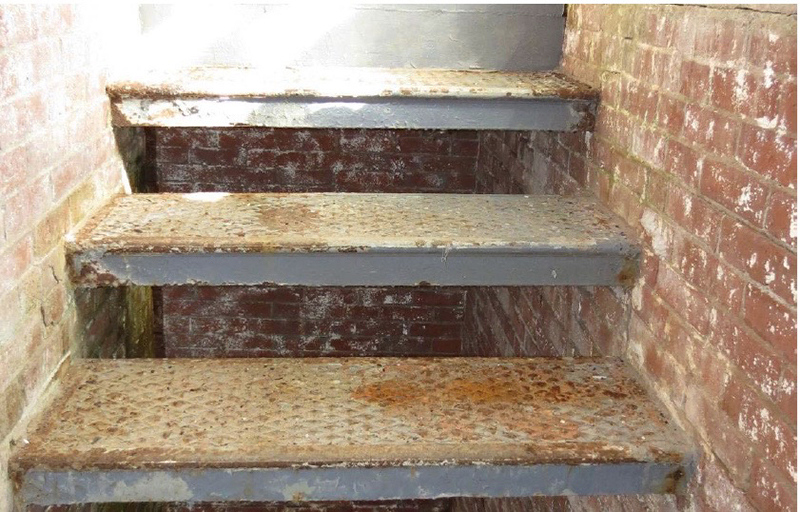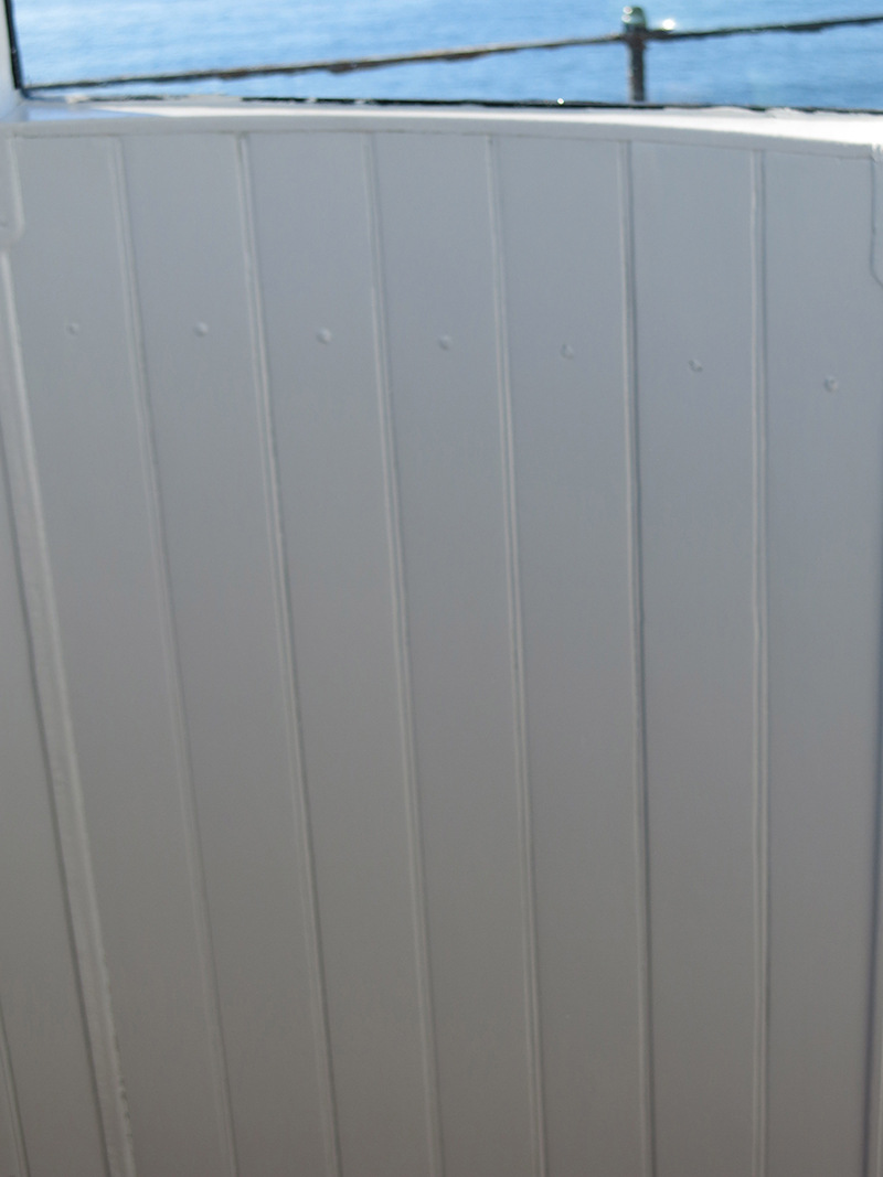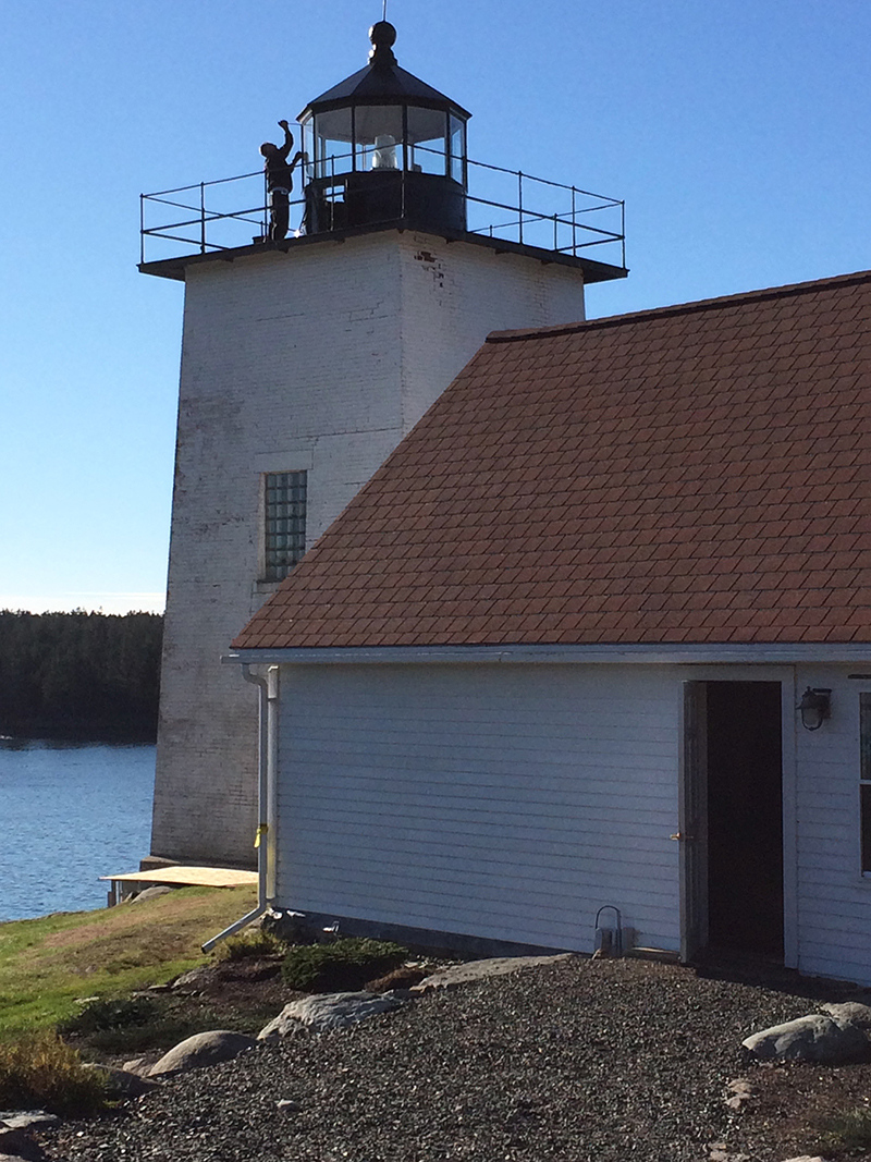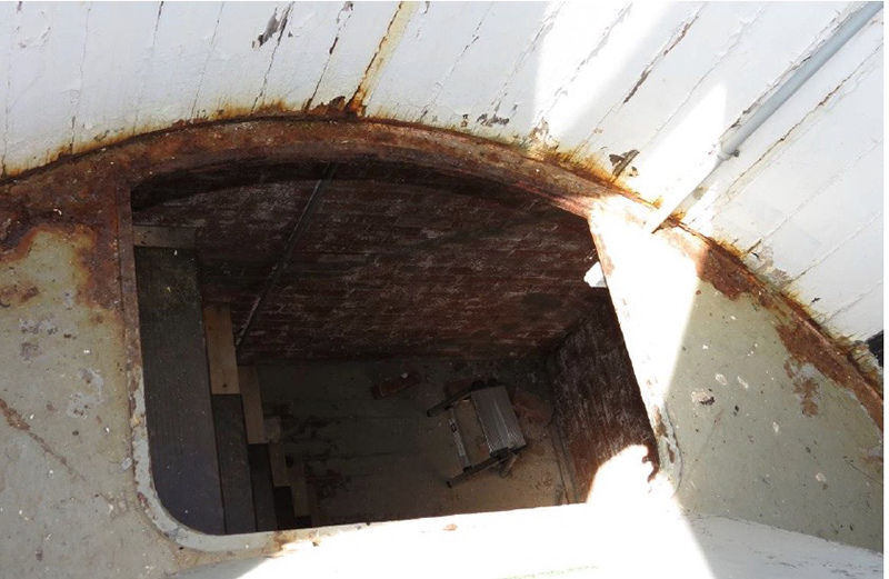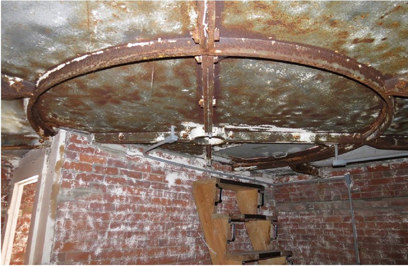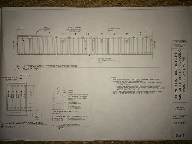 Restoration Phase 1 Plan for repairs, lantern room Lantern room before repair Wainscotting removed Wainscotting repaired Corrosion at floor level Corrosion repaired Floor hatch before restoration Floor hatch restored Vent repaired Vent cover restored Vent levers refabricated Watch room ceiling before restoration Watch room ceiling restored Windows removed Temporary plexiglass window panels Windows returned. Lead paint and corrosion on stairs Stairs repainted Lead paint removed Lantern pedestal before restoration Lantern pedestal restored Restored pedestal