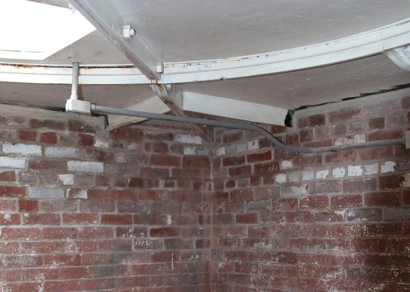 Bricks beneath catwalk removed for access to underside of platform