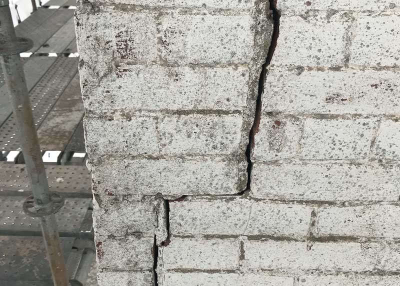 Damaged bricks removed